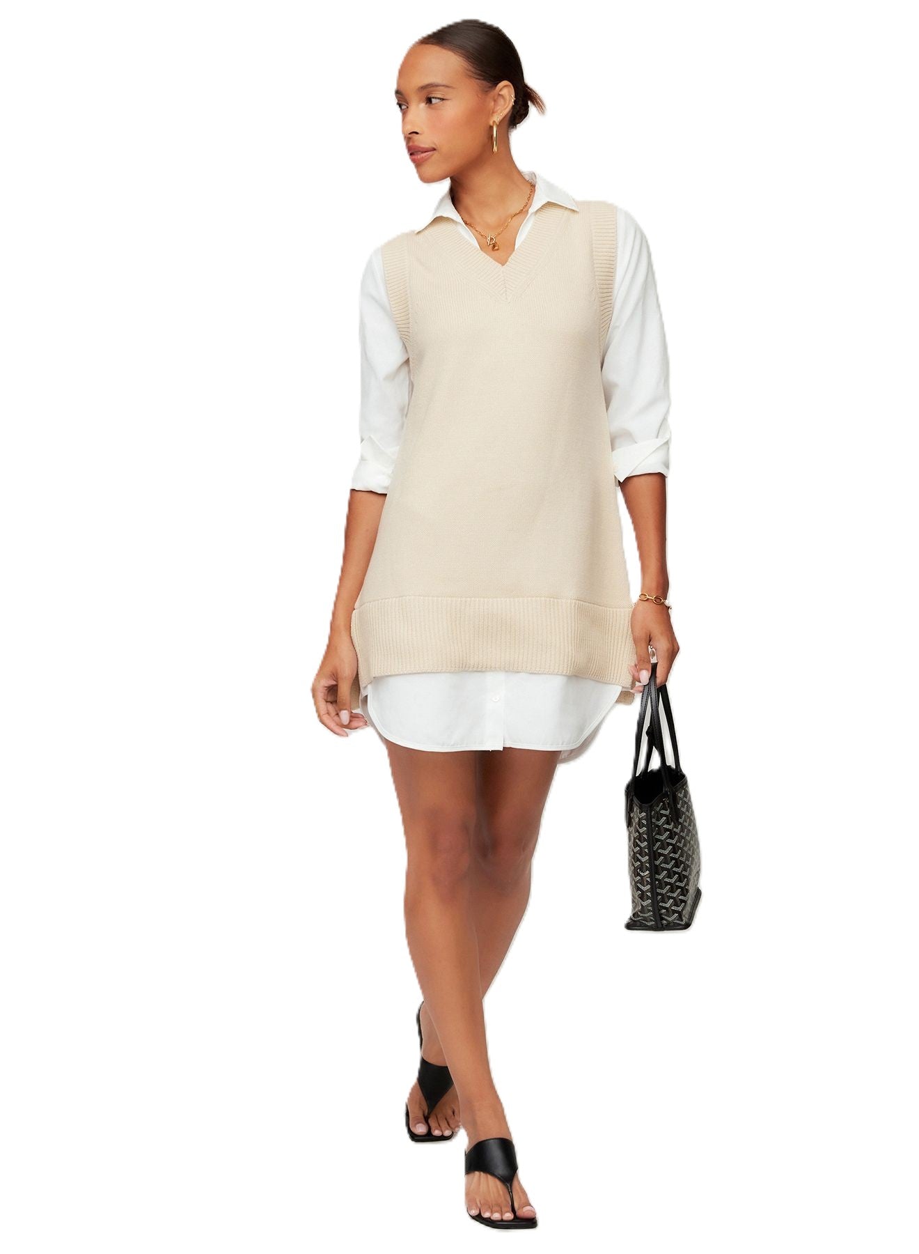 Fifteen Twenty Elora Mixed Media vest Dress - Oatmeal