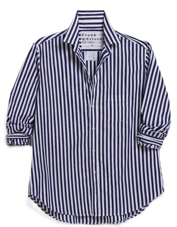 Frank & Eileen Relaxed Button-Up Shirt - Navy White Block Stripe