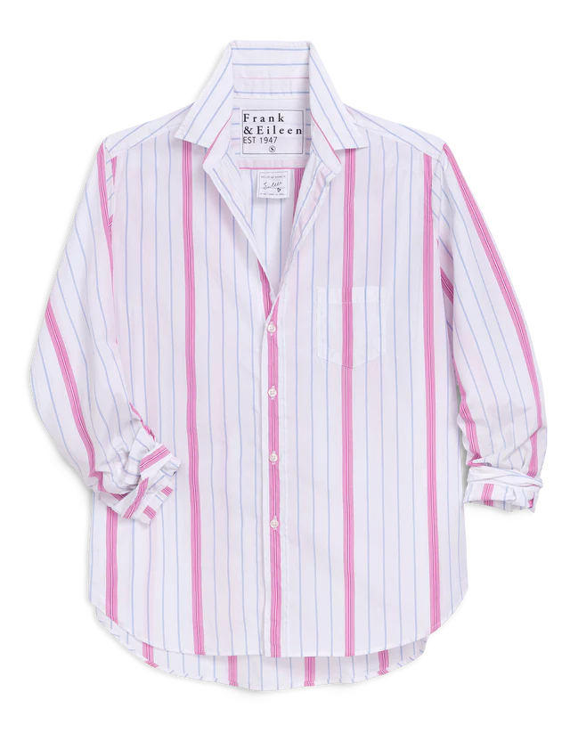 Frank & Eileen Relaxed Button Up Shirt - Multi Stripe Pink Blue