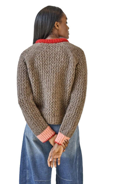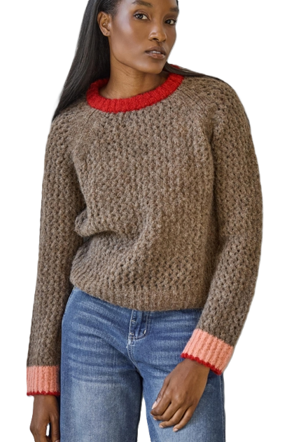 Lilla P Contrast Trim Crewneck Sweater - Java Combo