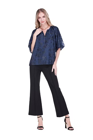 Joy Joy Puff Sleeve Peasant Top - Navy