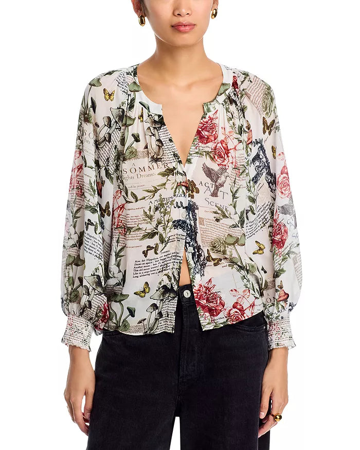 Alice + Olivia Thalia Button Down Blouse - Dreamscape Moon Vanilla