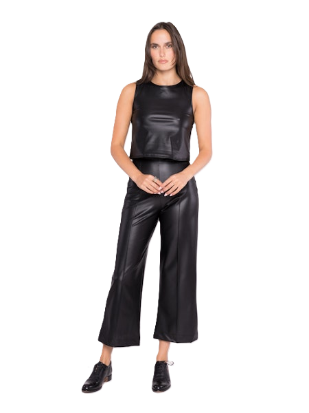Ripley Rader Vegan Leather Straight Leg Pant Cropped - Black